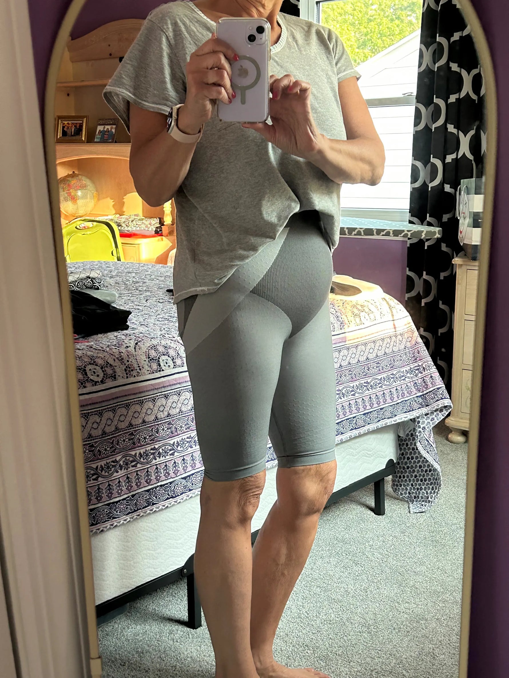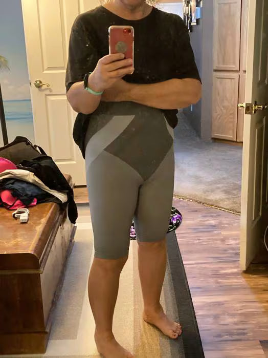 I am so happy that I found TheBlackPurple Mass & Slim Shorts!!! I am recovering from liposuction on my thighs and these shirts are amazing. They have great compression, but are still very comfortable to wear for 8+ hours at work under my clothes. The size chart is very accurate, I ordered a Medium, which I don't remember the last time I was that size, and they fit perfectly. Everything is smoothed out on my thighs, butt, waist, and stomach. The tourmaline beads are an amazing technology as well. I feel like they are aiding in making my recovery faster. My thighs look and feel smoother already, and I've only been wearing them a week. These shorts are so amazing and I can't wait to see how great my thighs look after continued use! Thank you for making a compression garment that goes above and beyond.